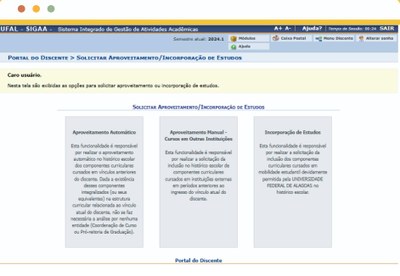 Informamos que no site da UFAL, na aba SIGAA (link -> https://ufal.br/sig/sigaa/modulos/graduacao ) encontra-se disponível um elenco de tutoriais que podem auxiliar nas demandas de uso do SIGAA. Dentre estes tutoriais, destacamos a publicação do tutorial de orientação para Aproveitamento de Estudos.